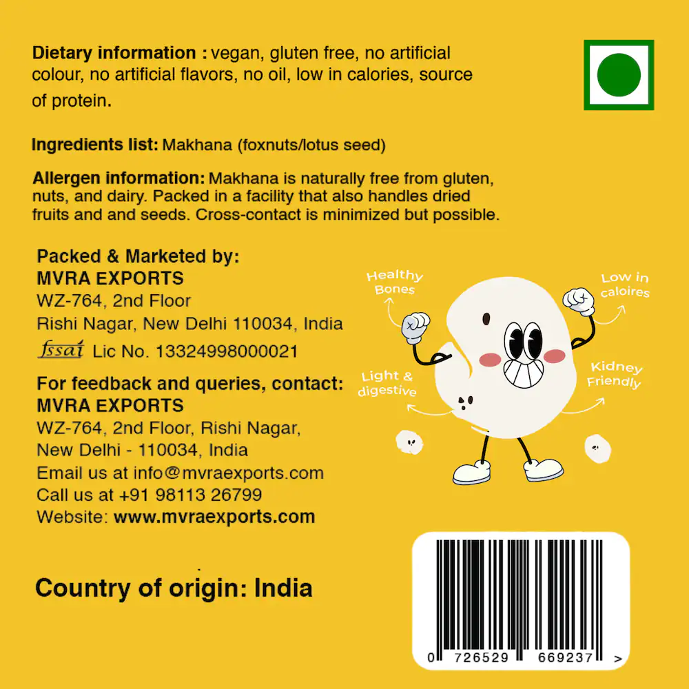 Foxnut (Makhana) is a light, crunchy, and nutritious snack—low in calories, rich in protein and minerals. Perfect for healthy munching, fasting, or roasting with spices. 🌿🥜