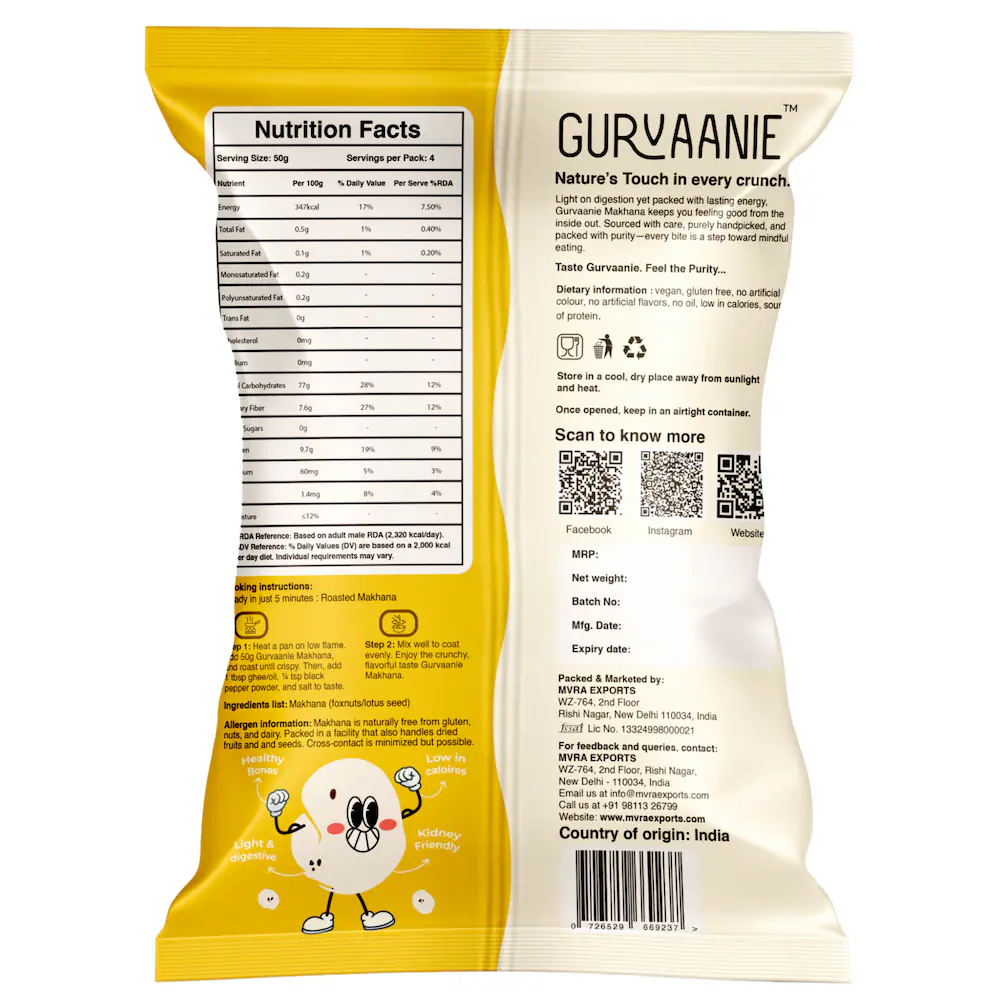 Foxnut (Makhana) is a light, crunchy, and nutritious snack—low in calories, rich in protein and minerals. Perfect for healthy munching, fasting, or roasting with spices. 🌿🥜